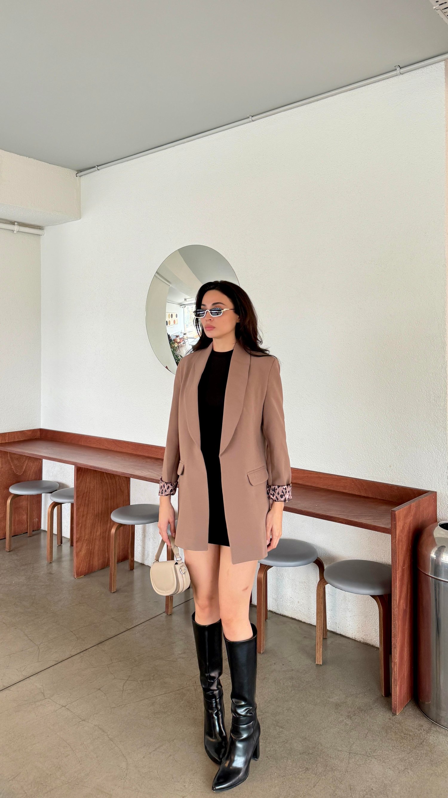 Taş Şal Yaka Kolu Katlamalı Blazer Ceket Açık Kahve Şal Yaka Kolu Katlamalı Blazer Ceket