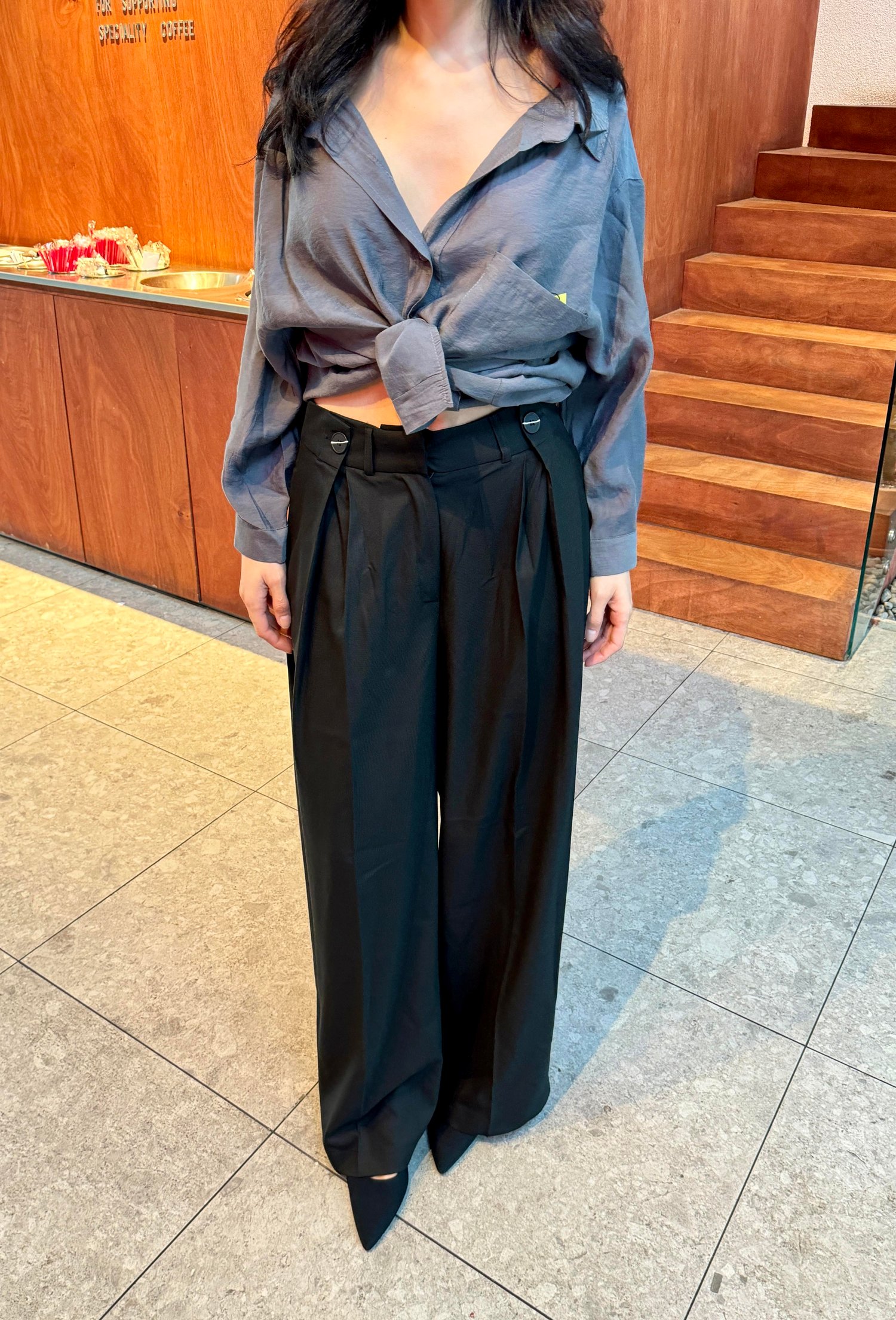 Antrasit  Düşük Omuz Oversize Gömlek