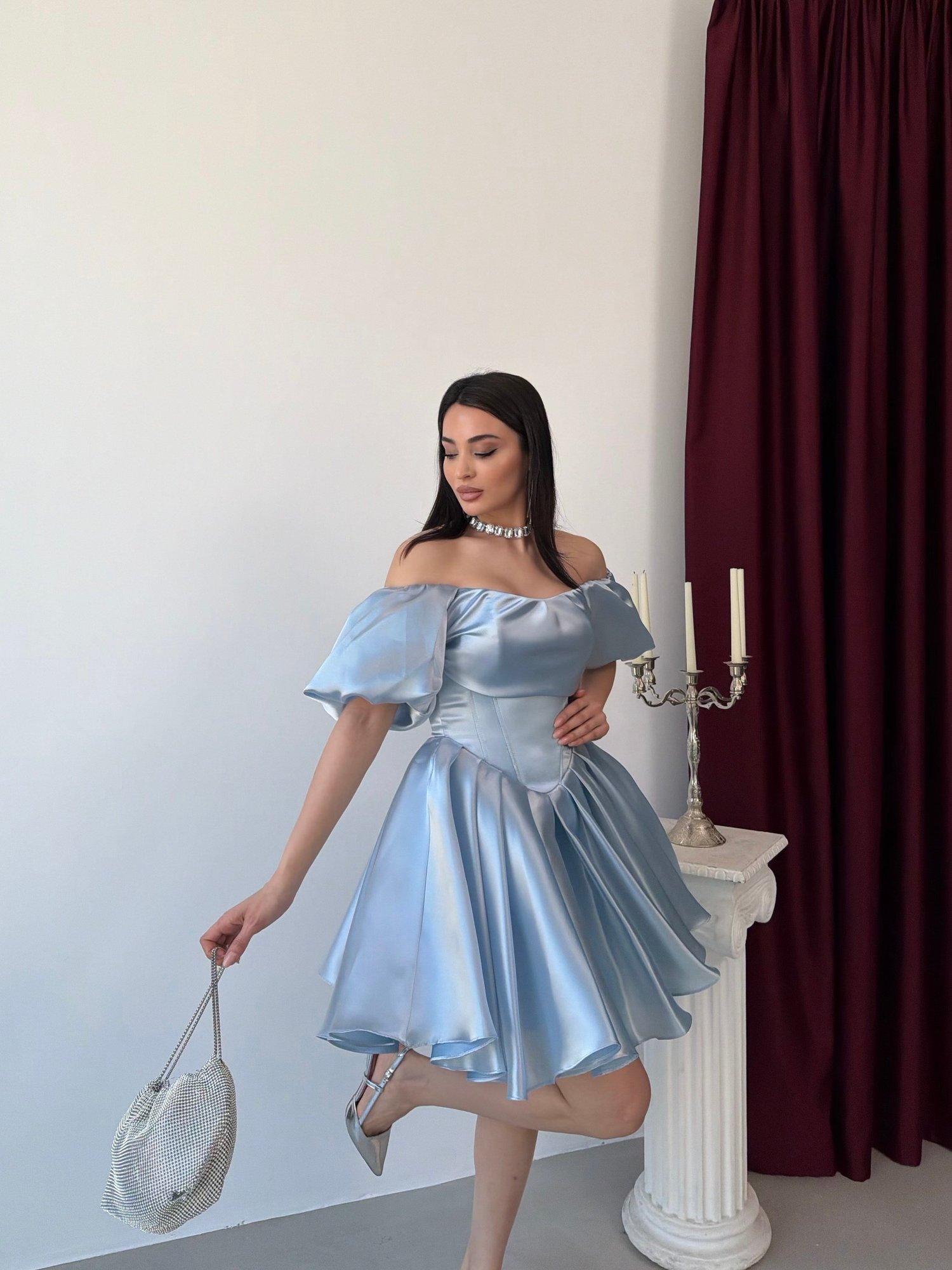 Bebe Mavi Balon Kol Korse Detaylı Kısa Mezuniyet Elbisesi