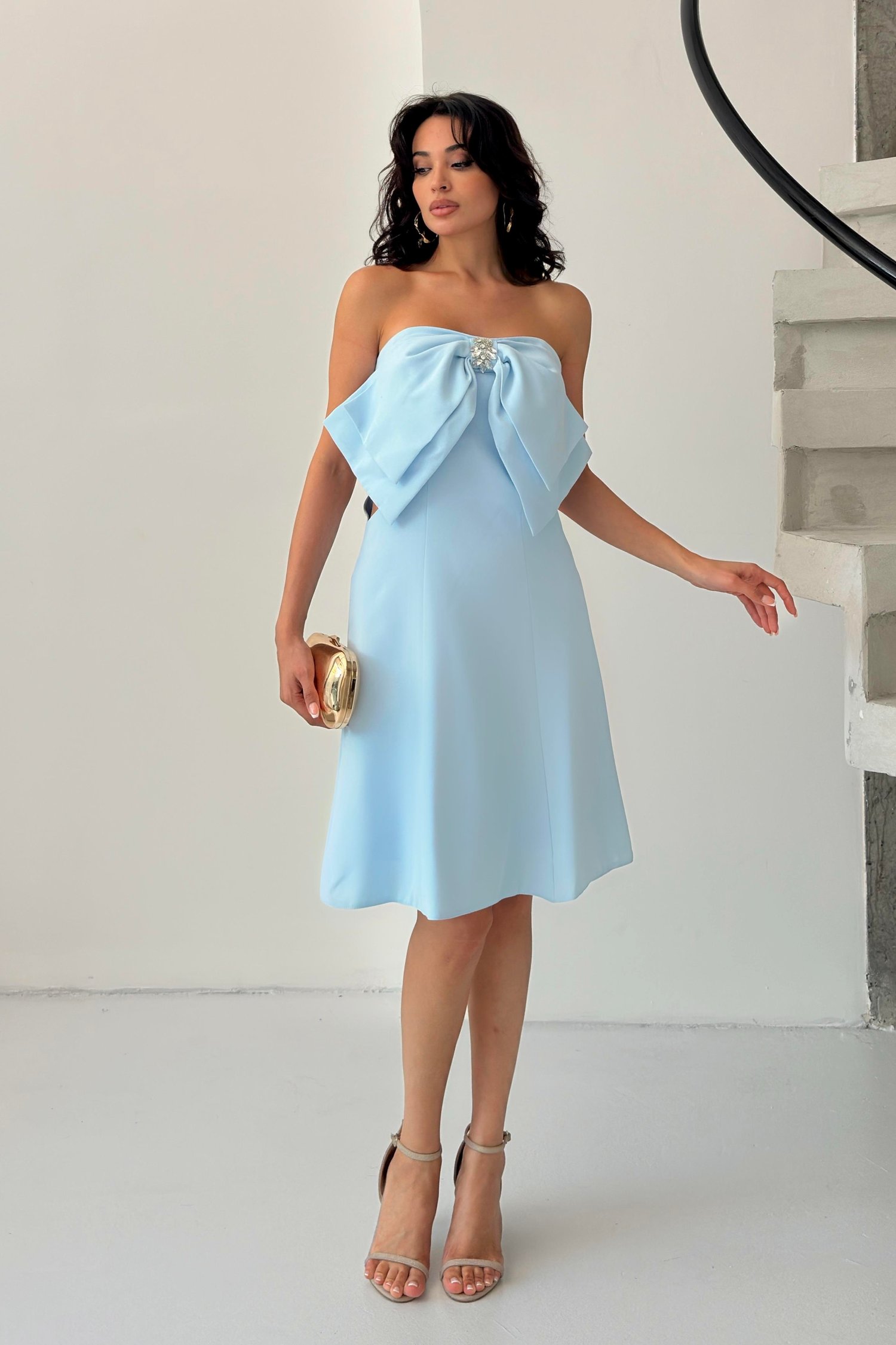 Bebe Mavi Fiyonk Detaylı Mini Abiye Elbise