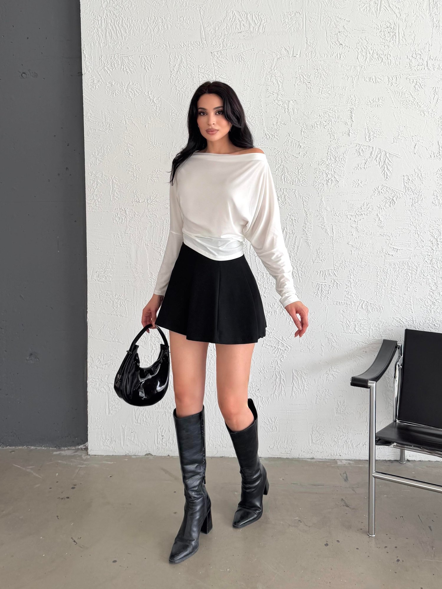 Beyaz Kayık Yaka Düşük Omuz Bluz