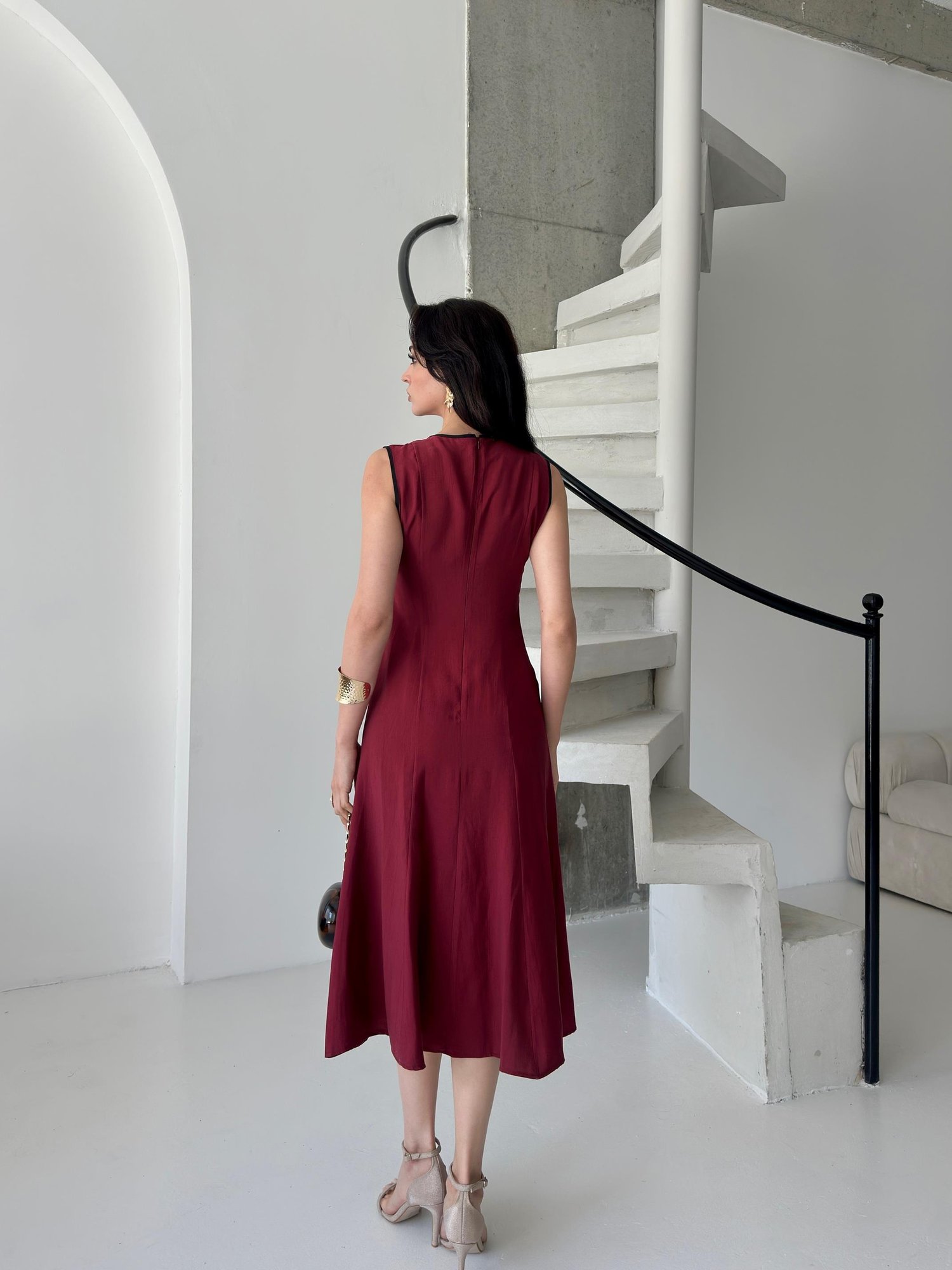 Bordo Bisiklet Yaka Midi Kolsuz Midi Elbise