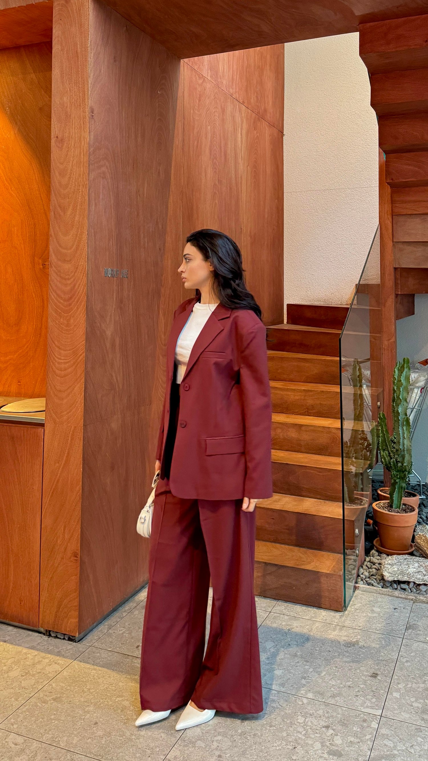 Bordo Rahat Kalıp Maskülen Blazer Ceket