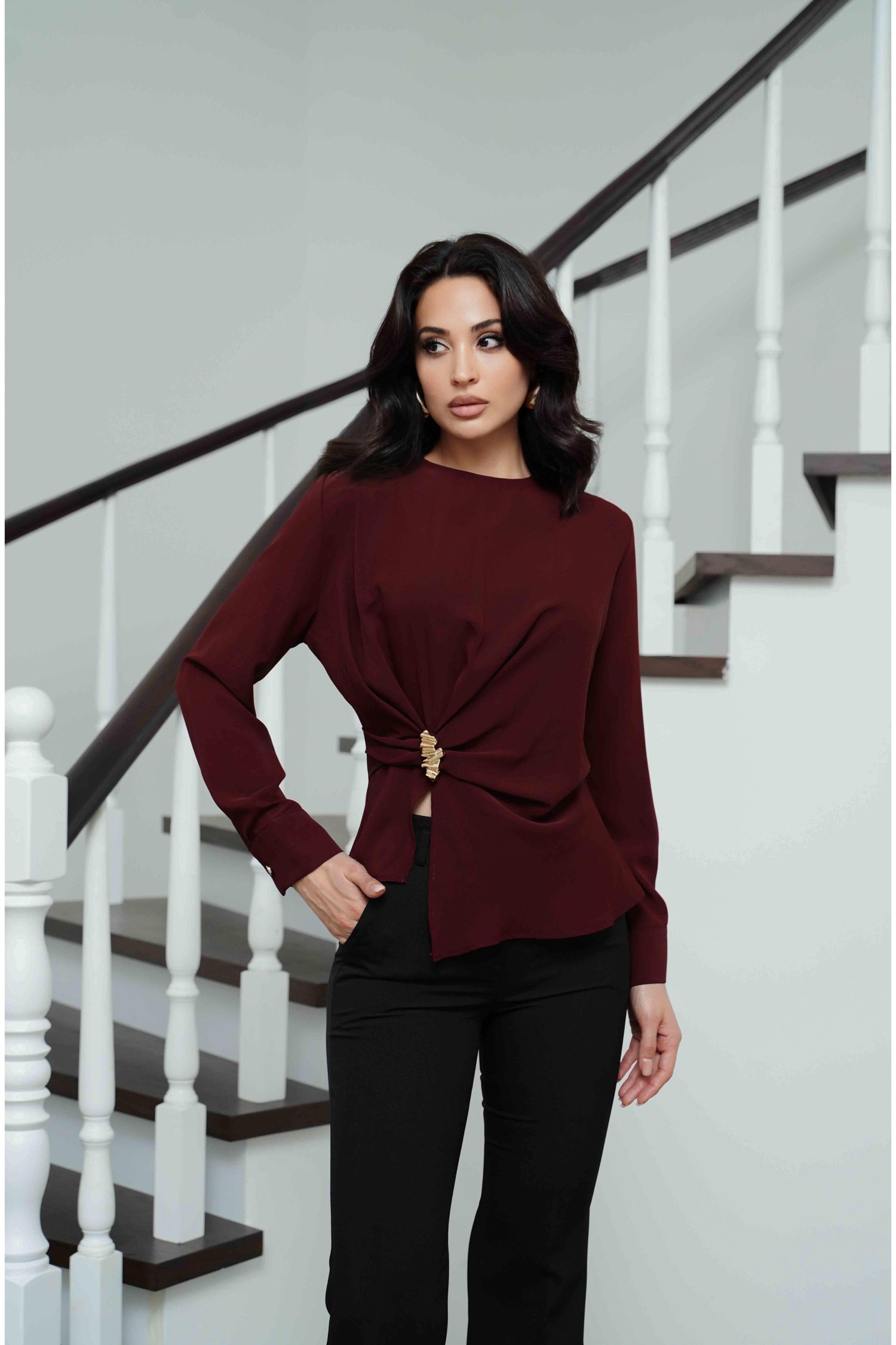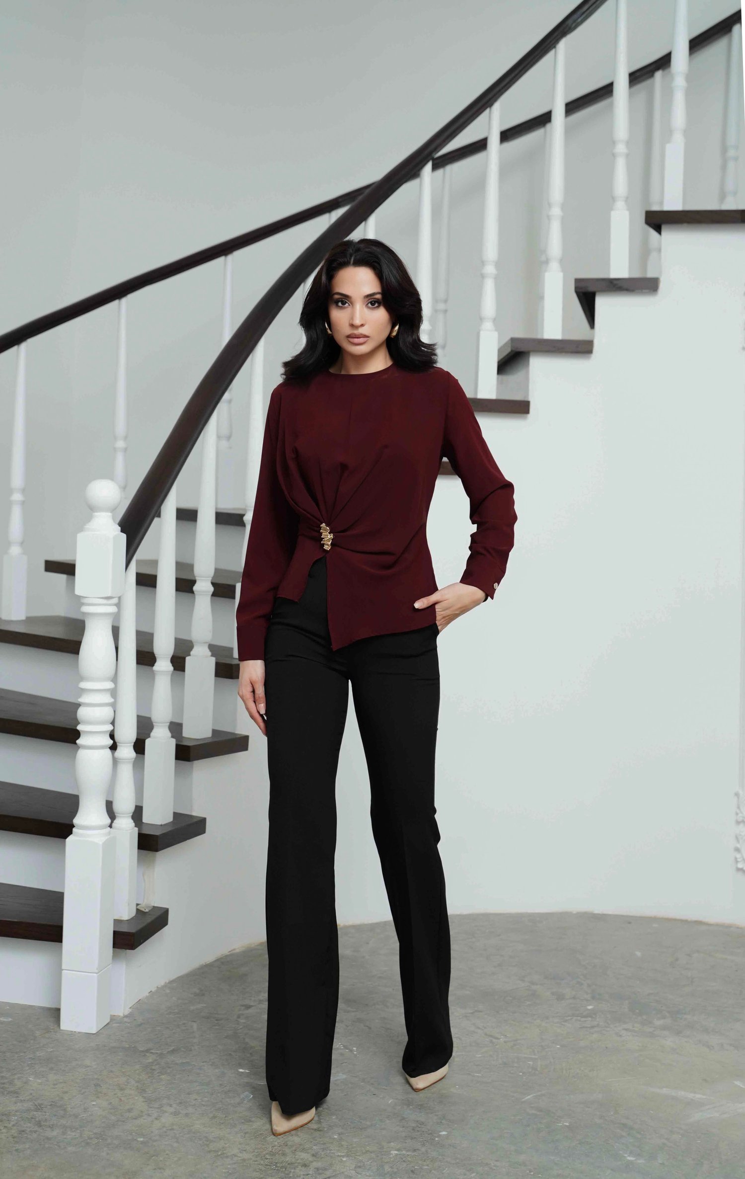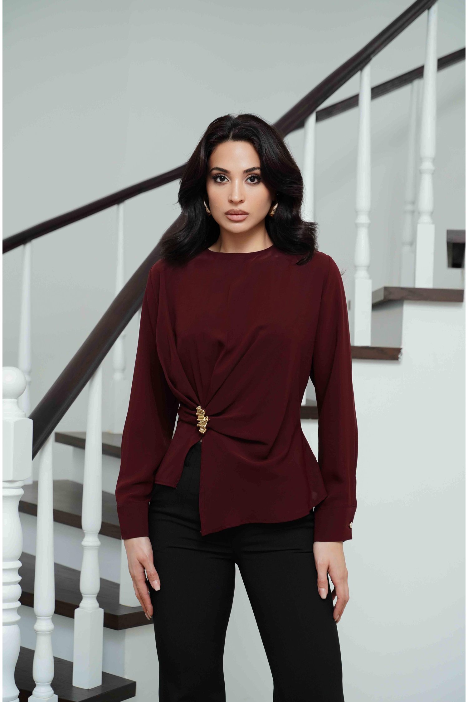 Bordo Toka Detaylı Uzun Kollu Bluz