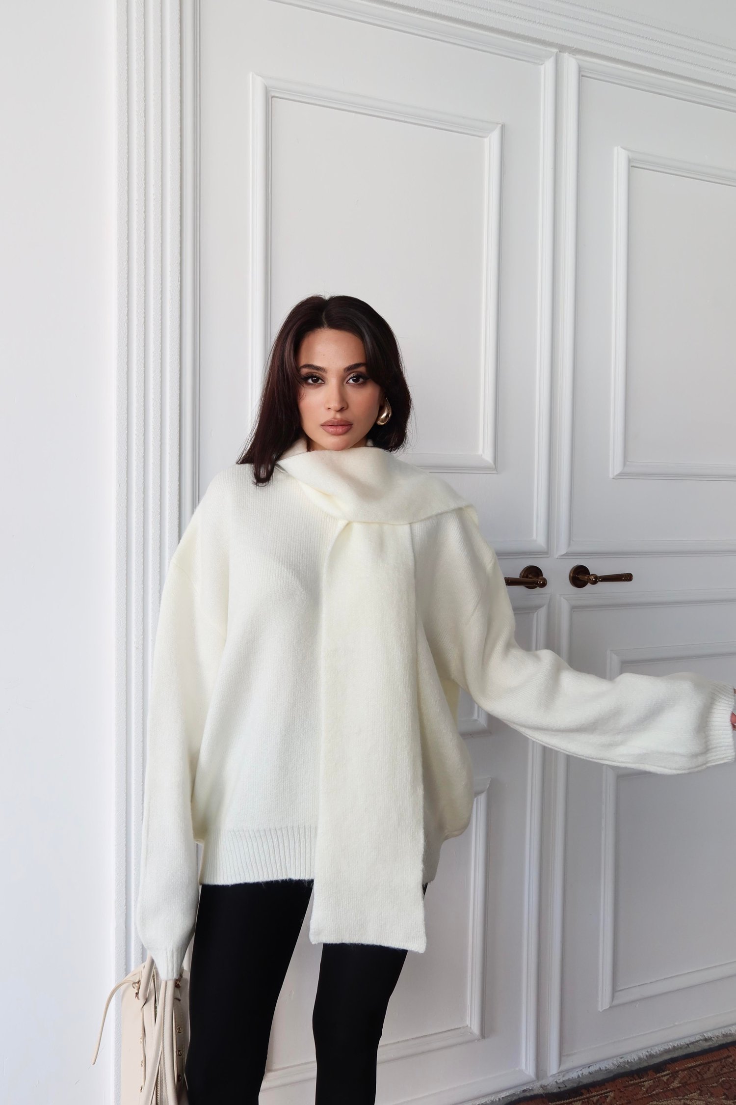 Ekru Atkılı Yumuşak Dokulu Triko Kazak