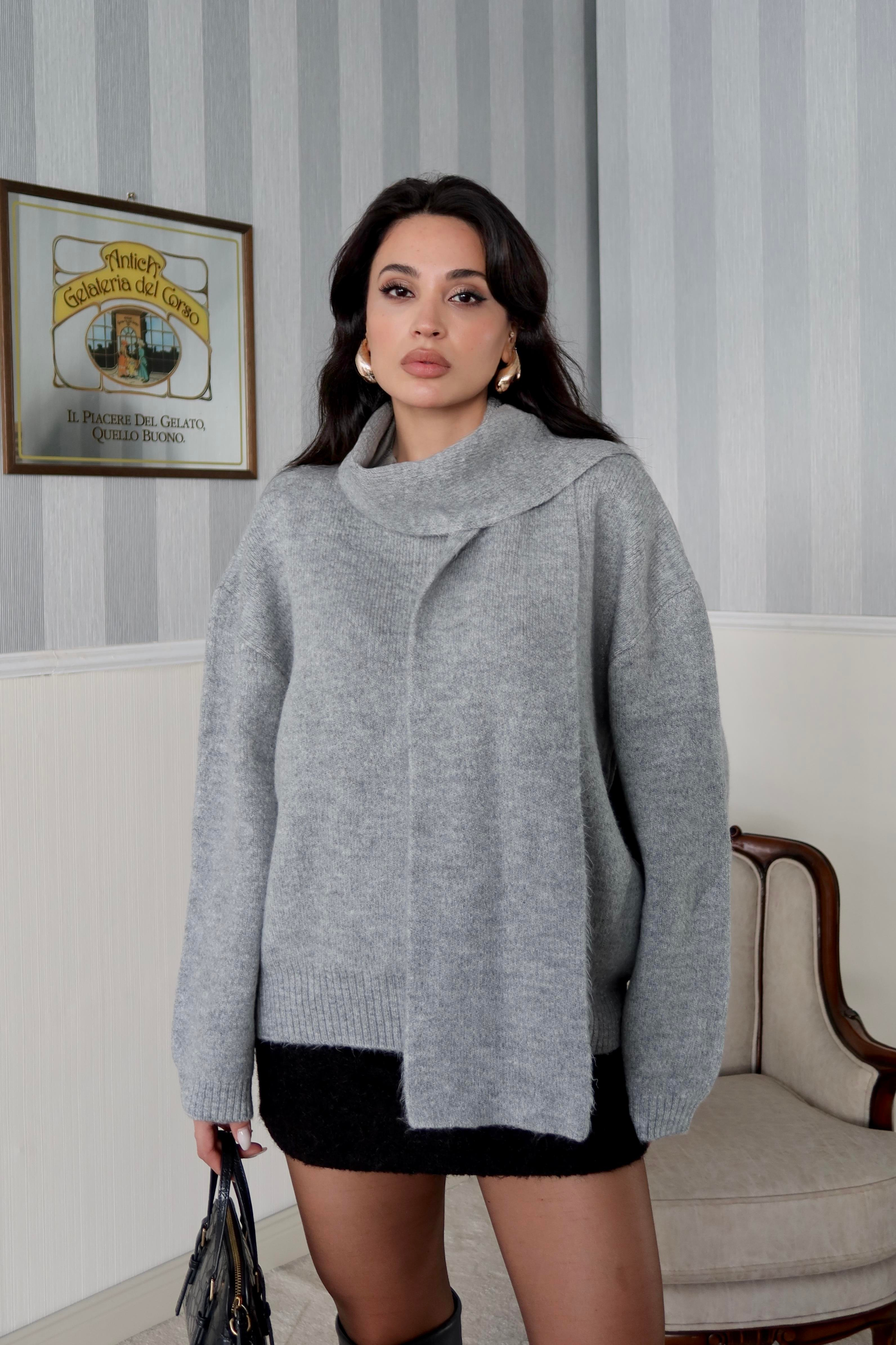 Gri Atkılı Yumuşak Dokulu Triko Kazak