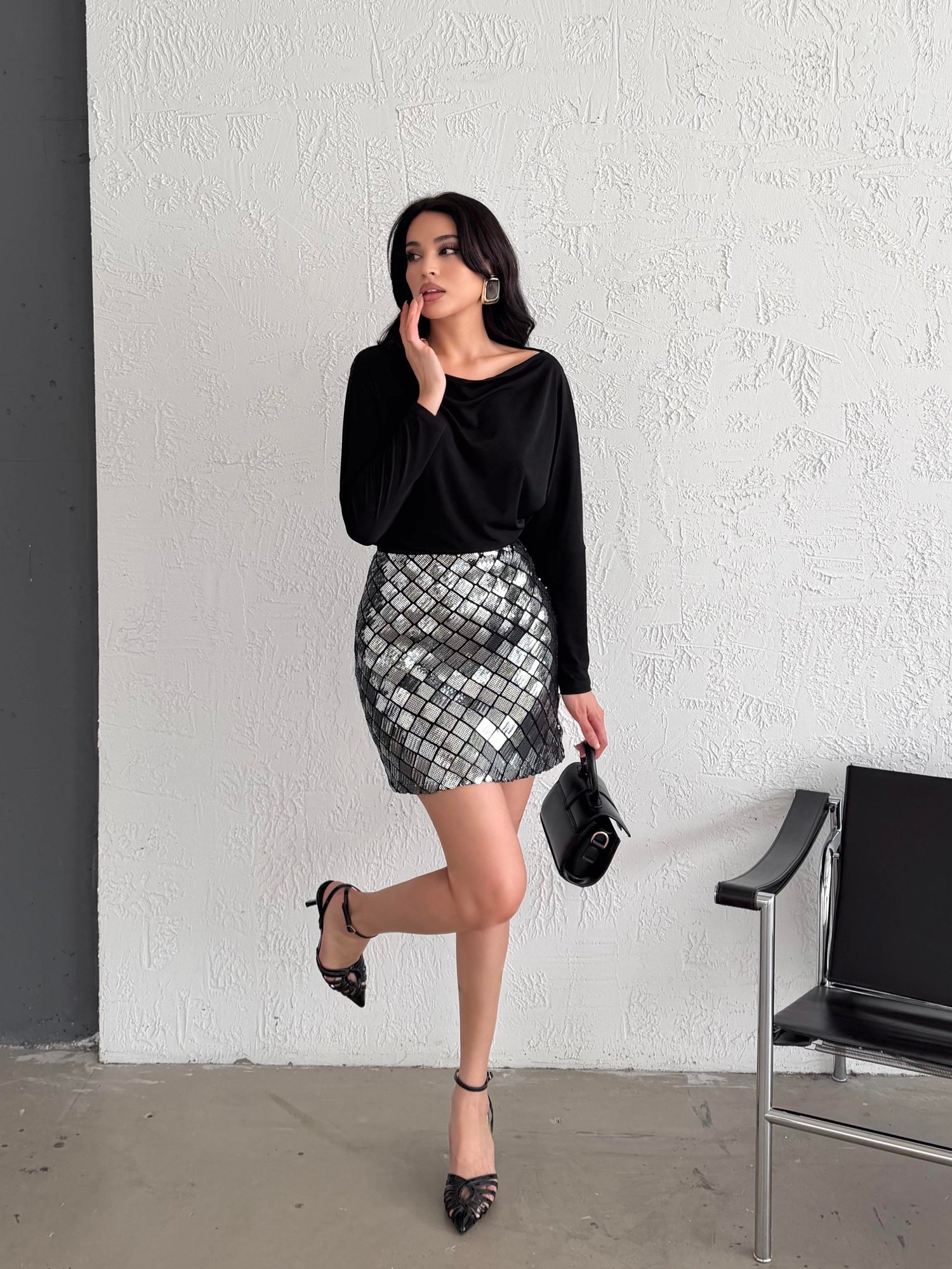 Gümüş Pul Payet İşlemeli Mini Etek