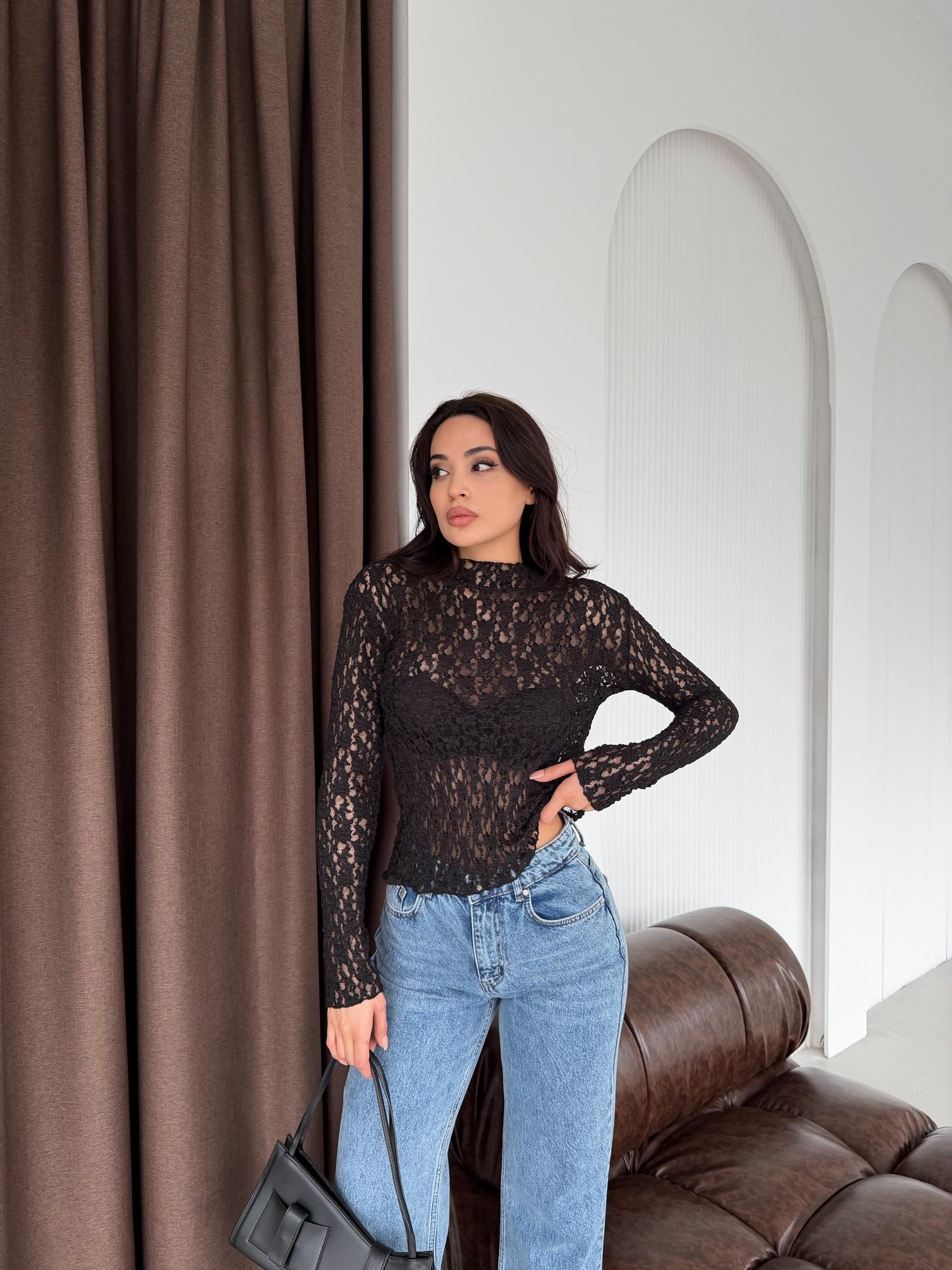 Siyah Dantel İşlemeli Transparan Bluz Kahve Dantel İşlemeli Transparan Bluz