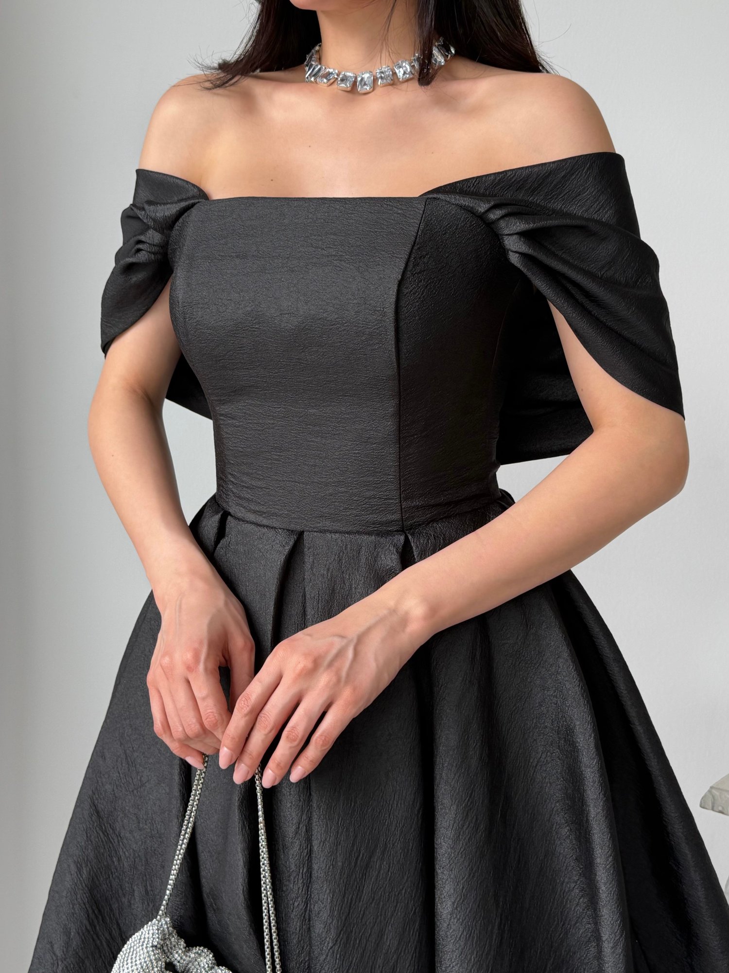 Siyah Eteği Pileli Sırt Detaylı Abiye Elbise