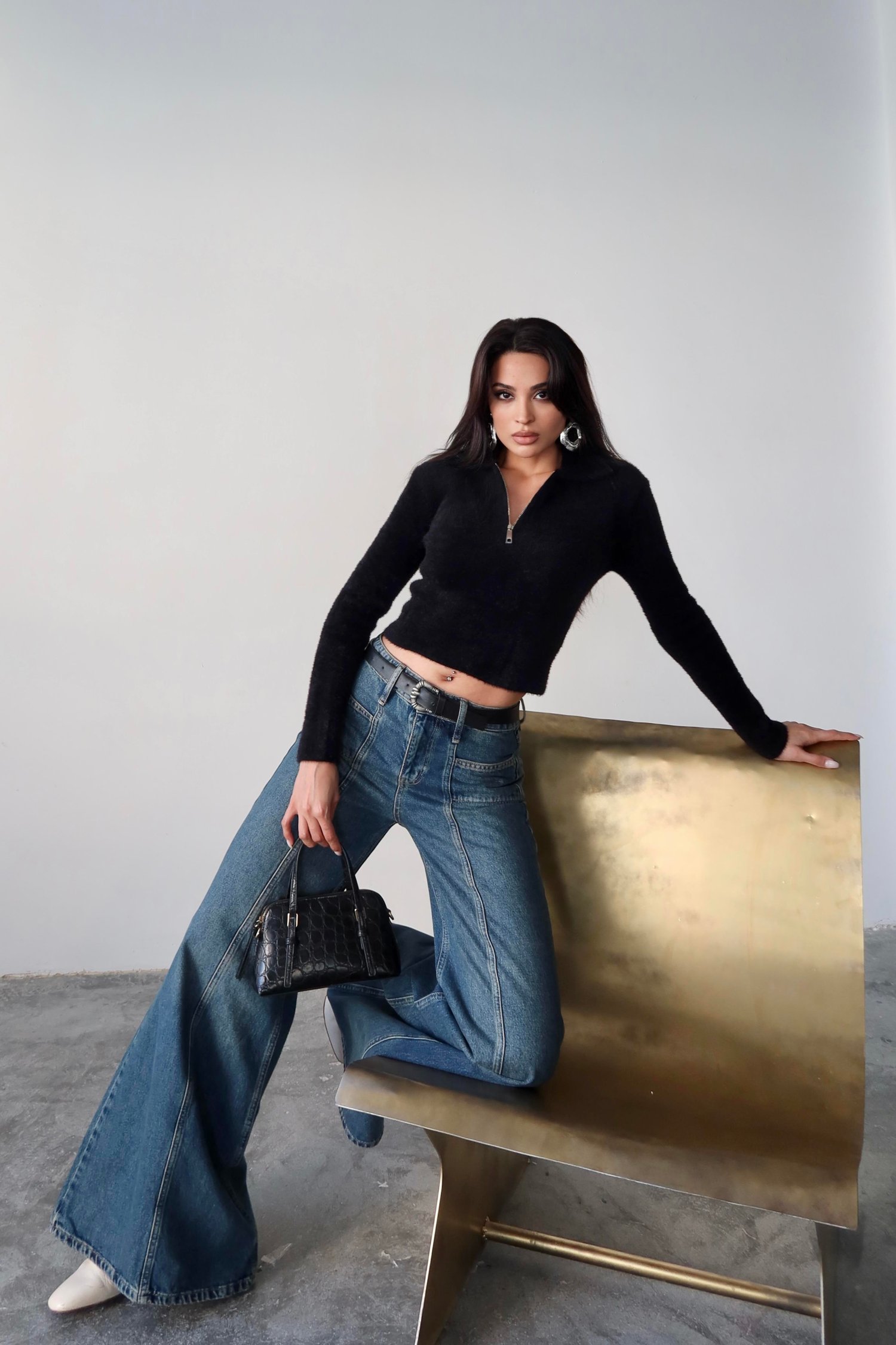 Siyah Fermuarlı Yumuşak Dokulu Triko Kazak