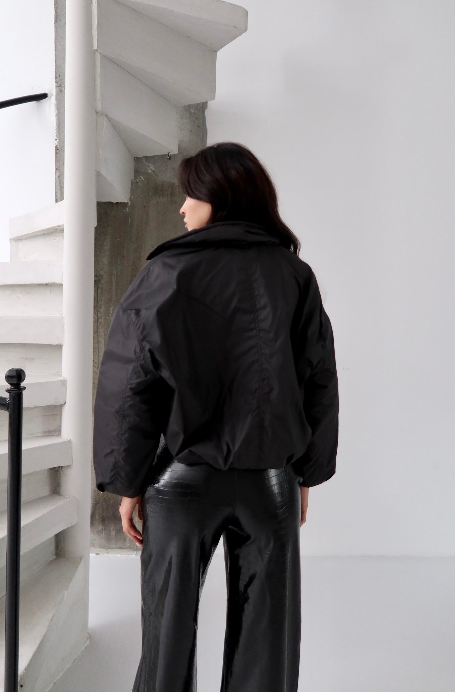 Siyah Kapitone Astarlı İnce Mont