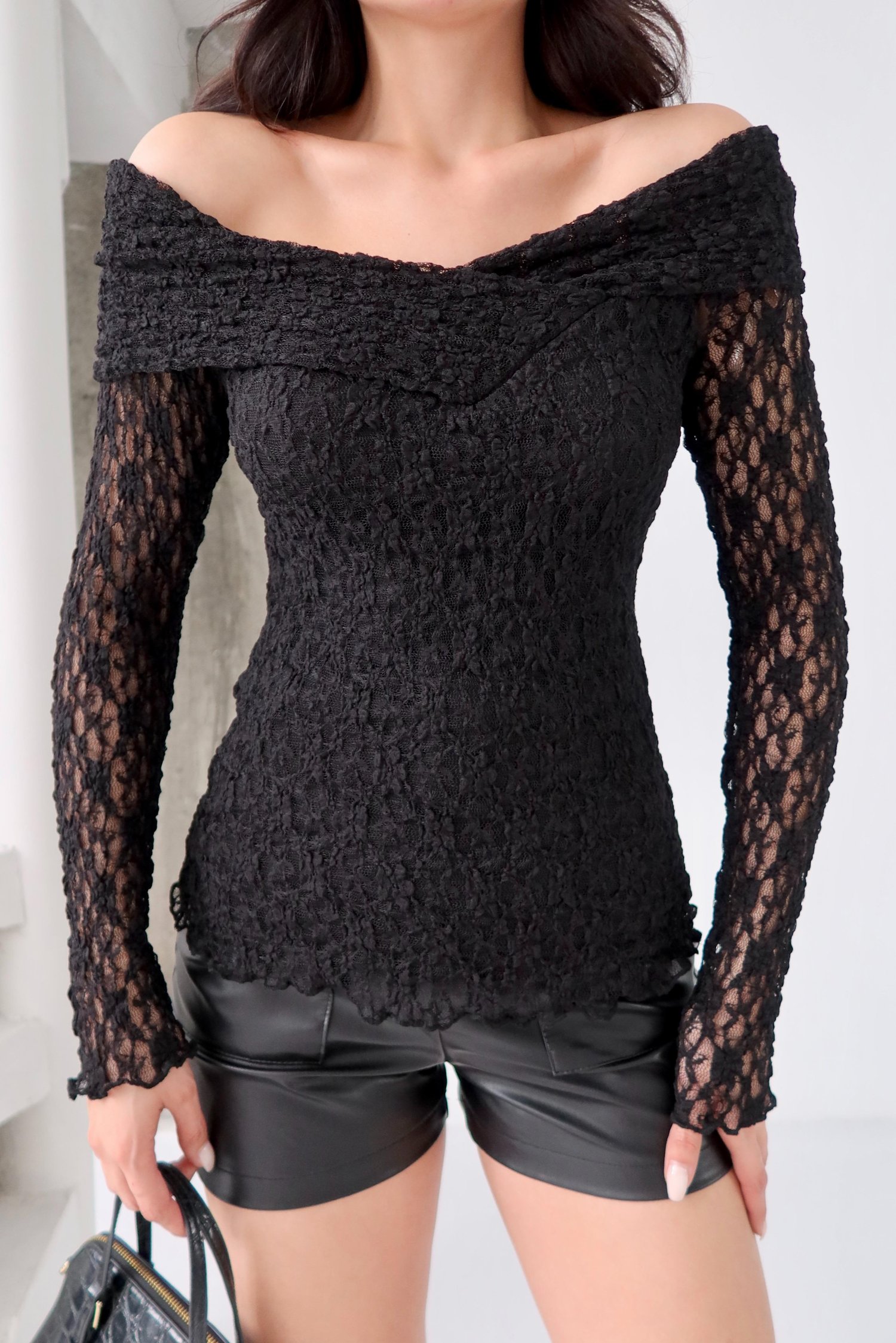 Siyah Kayık Yaka Dantel Bluz
