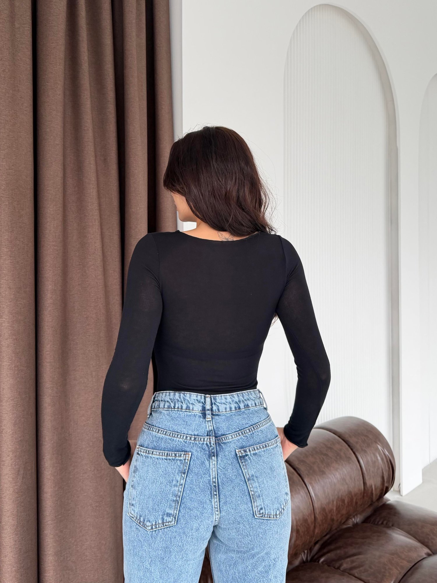 Siyah Kayık Yaka Ultra Hafif Transparan Bluz
