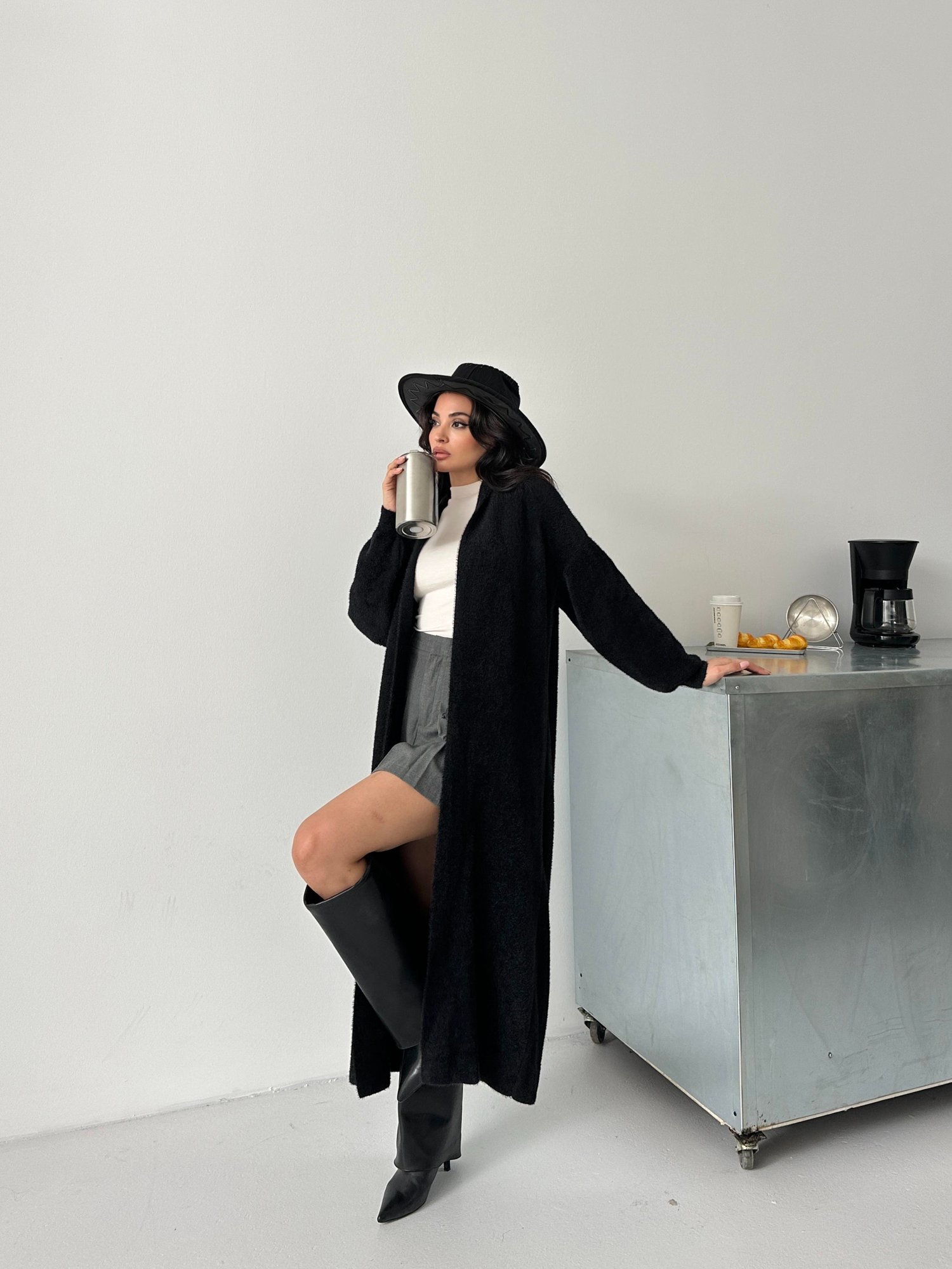 Siyah Sakallı Uzun Hırka Camel Sakallı Uzun Hırka Antrasit Sakallı Uzun Hırka