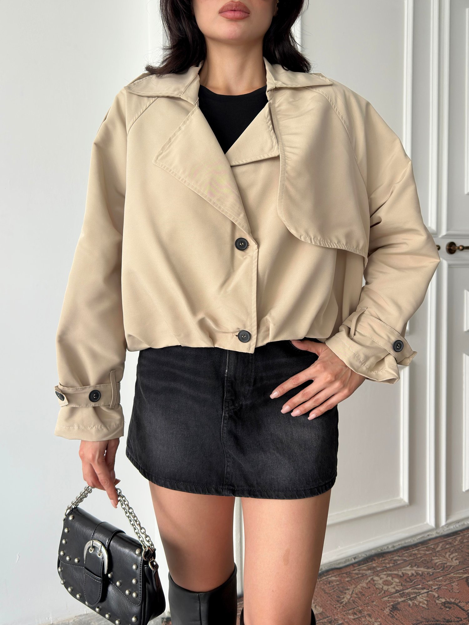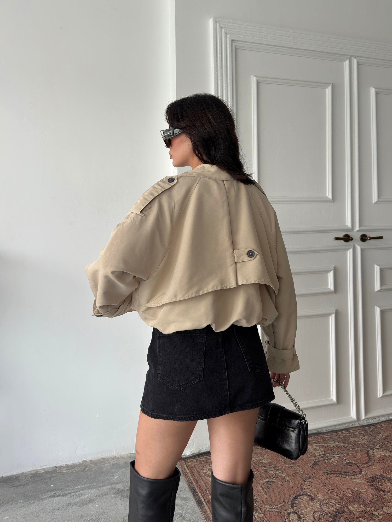 Taş Regular Çift Düğme Kısa Trençkot Siyah Regular Çift Düğme Kısa Trençkot