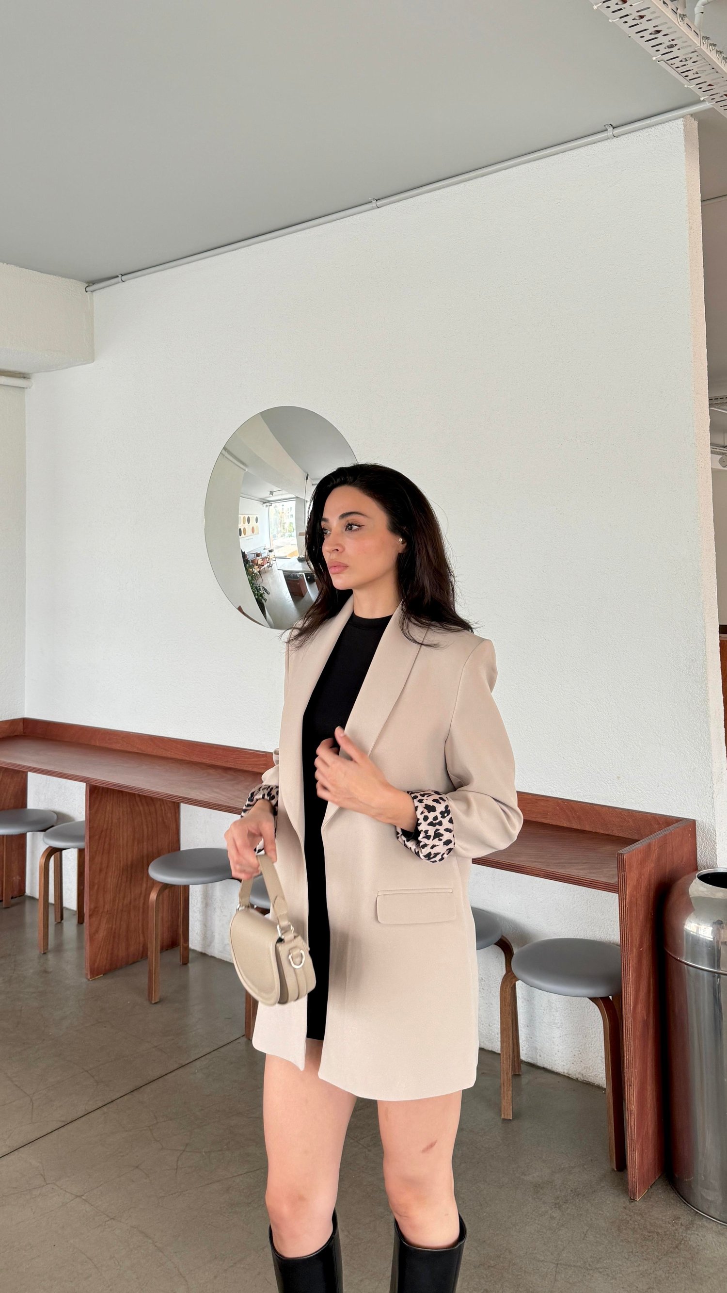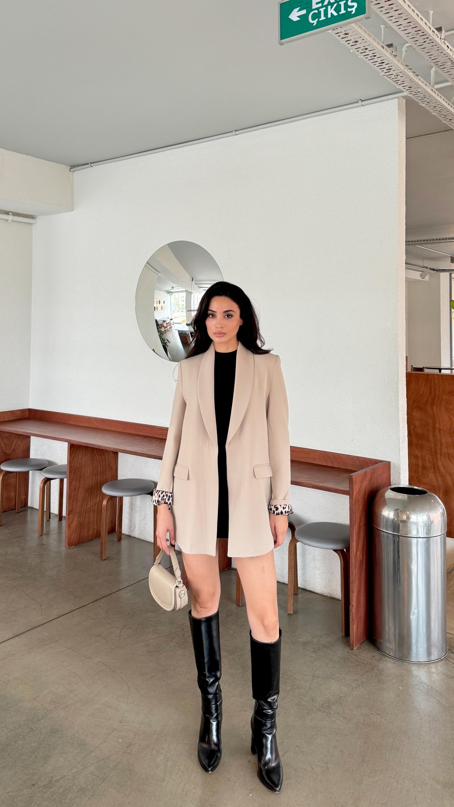 Taş Şal Yaka Kolu Katlamalı Blazer Ceket Açık Kahve Şal Yaka Kolu Katlamalı Blazer Ceket